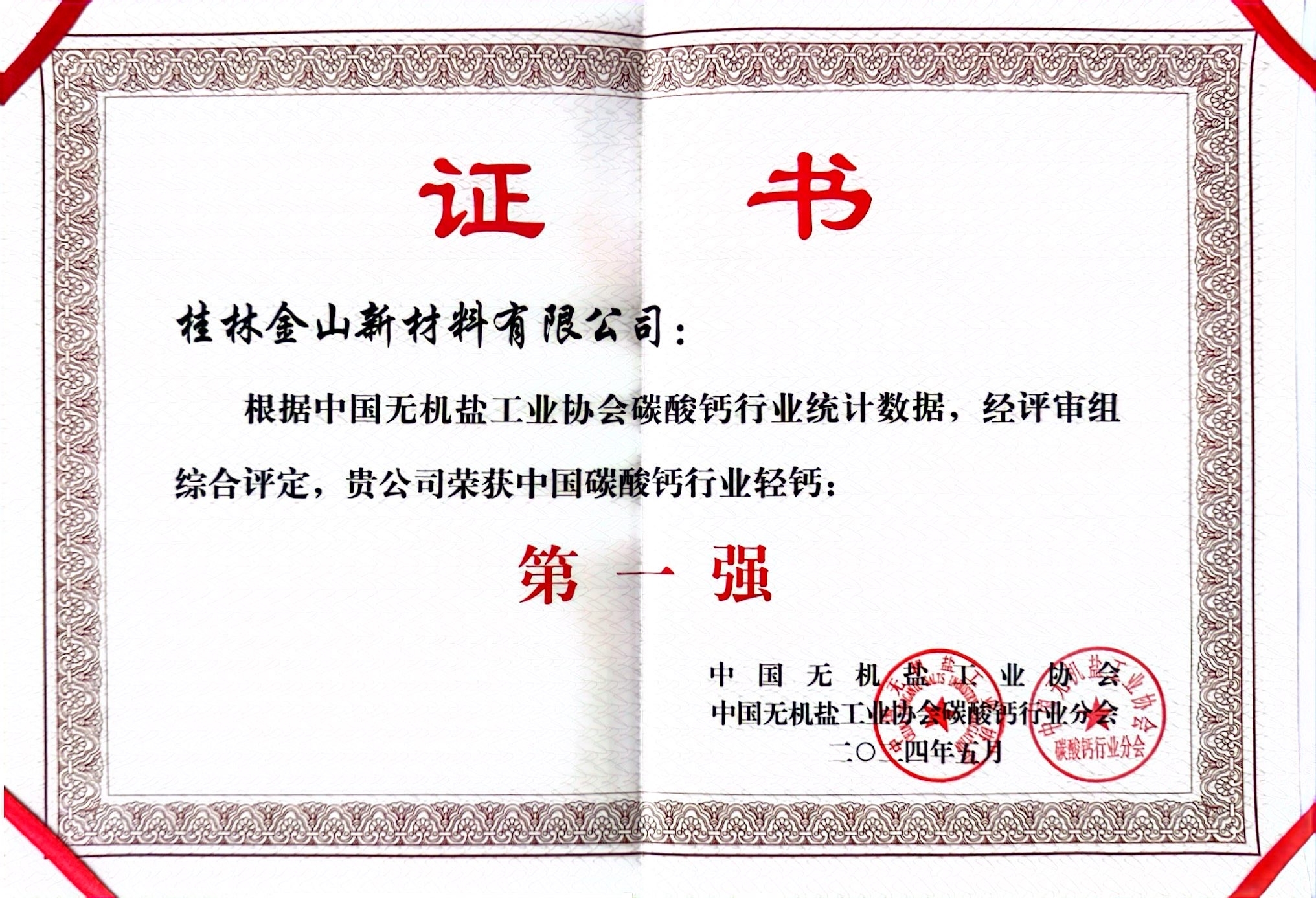 喜報??!我公司喜獲全國碳酸鈣行業輕鈣第一強、納米鈣四強!